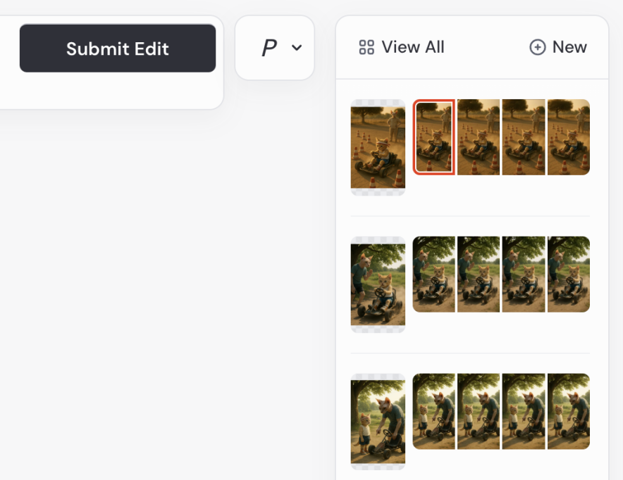 B5: Submit Edit, AI sẽ tự động tạo 4 phiên bản cho bạn lựa chọn sản phẩm ở góc bên tay phải.