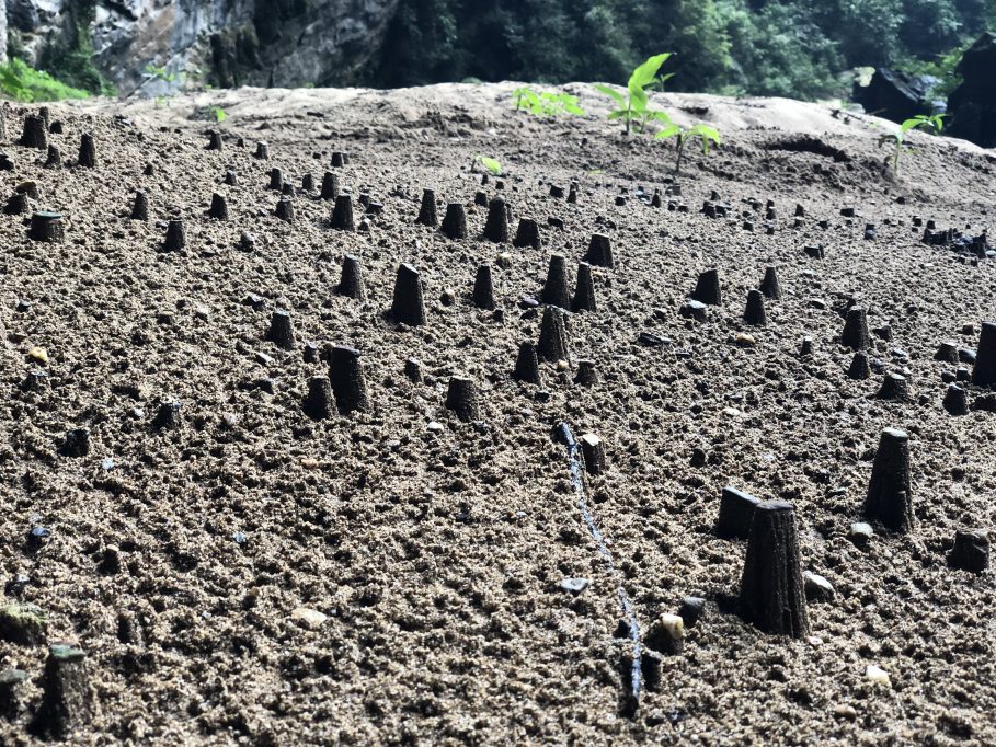 Những tháp đá thú vị hình thành từ hạt nước rơi xuống cát.