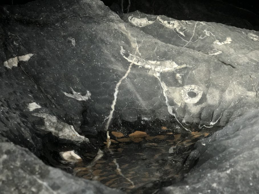 Lần đầu tiên tôi được chiêm ngưỡng những hóa thạch san hô có đường kính 3-4cm nằm trên các tảng đá lớn trong hang.